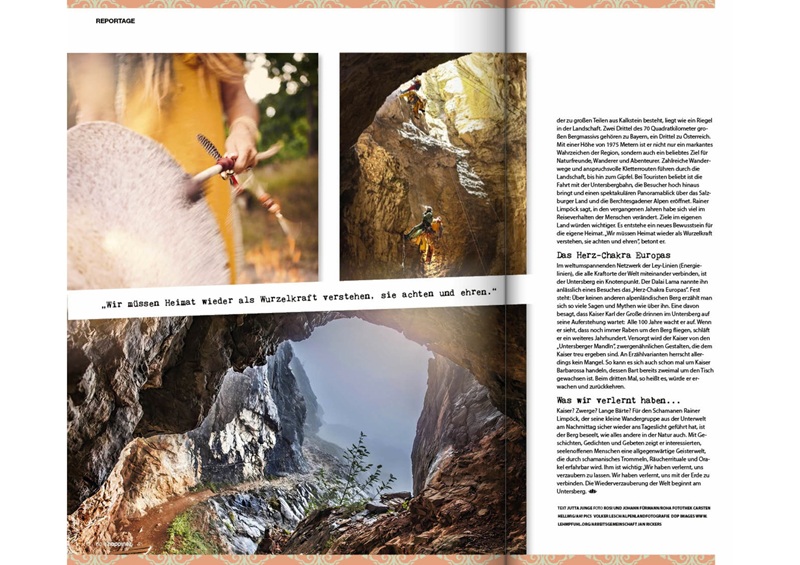 Eine Zeit ist gekommen, in der wir den Zugang zur anderen Welt wieder finden. Wir dürfen die Sprache der Natur lernen, dürfen ihr heilendes Wasser trinken, dürfen in die Unterwelt blicken, erkennen ihre besonderen Erdenergien, ihre eigene Zeit, entdecken ihre Propheten und Botschaften und lernen uns wieder zu wundern.