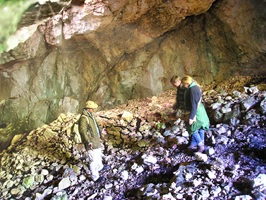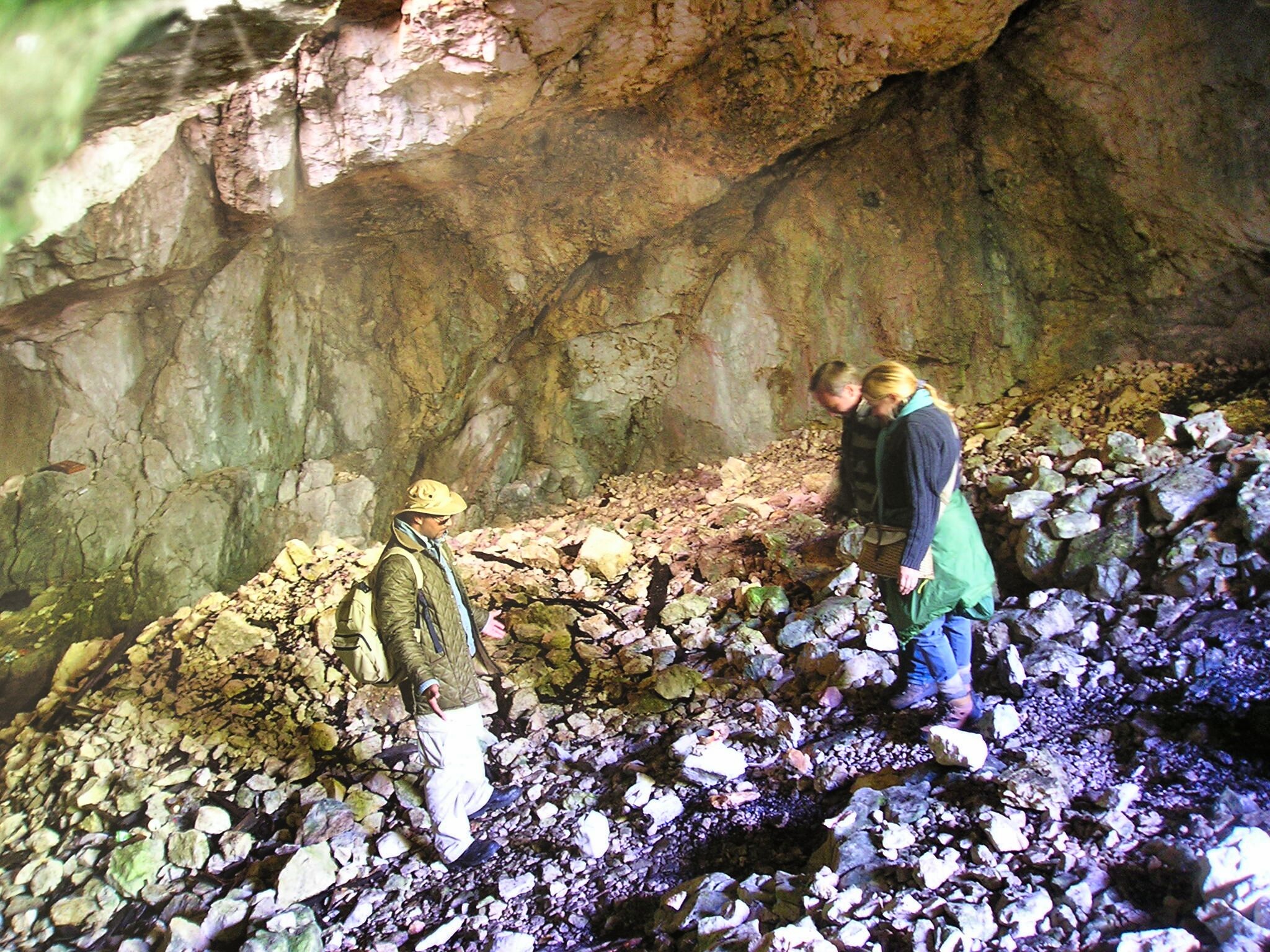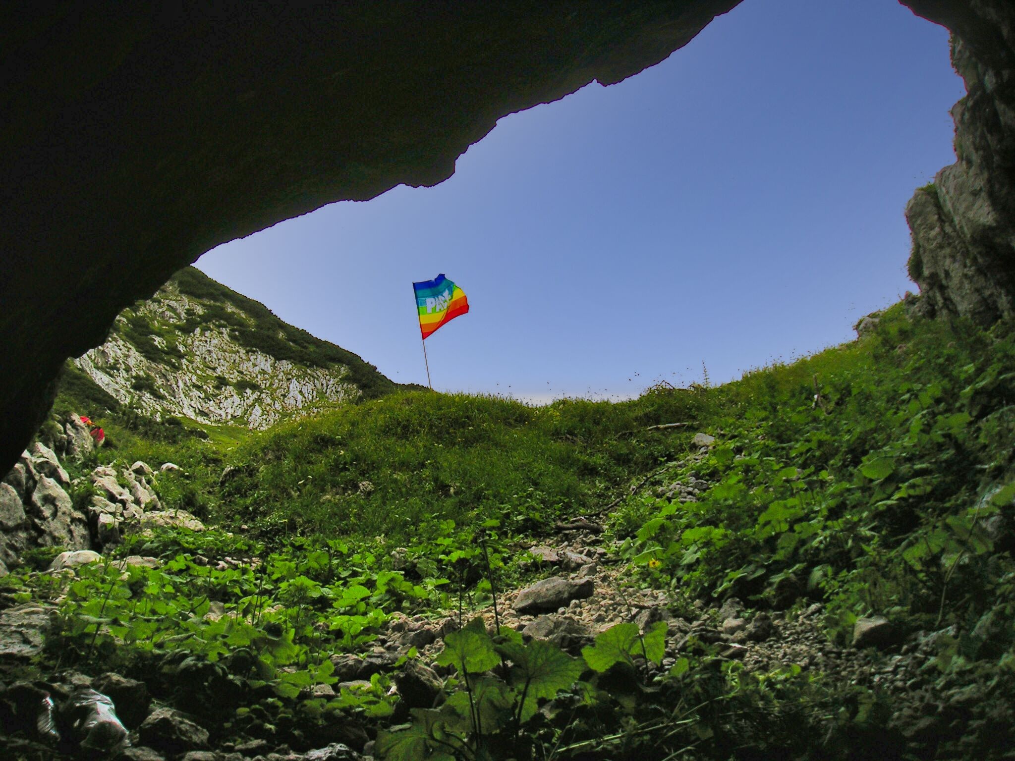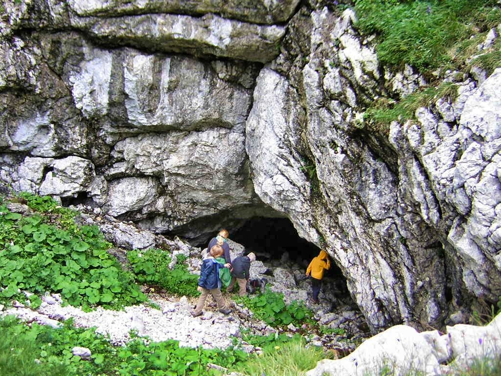 Als wir schließlich zum Kern der Scharte zurückkehrten fanden wir zumindest einen Wiesenhang auf der Ostseite und erwählten diesen zum Installationsort - bis ich am oberen Rand des Hanges stand und auf der anderen Seite einen Höhleneingang entdeckte. Neugierig stieg ich in die Unterwelt ein...