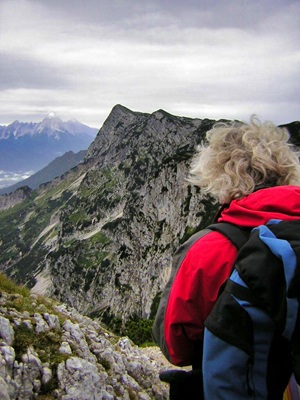 Der steile Abstieg hinunter zur Mittagsscharte forderte Trittsicherheit und Schwindelfreiheit und brachte mich an meine Grenzen. Auch in den Folgejahren war dieser Steig immer wieder eine Herausforderung und manch ein Pilger machte hier Stop und kehrte wieder um. Eine wahrhafte Grenzerfahrung - sogar im doppelten Sinn, da über die Mittagsscharte die Grenze zwischen Österreich und Deutschland verläuft.