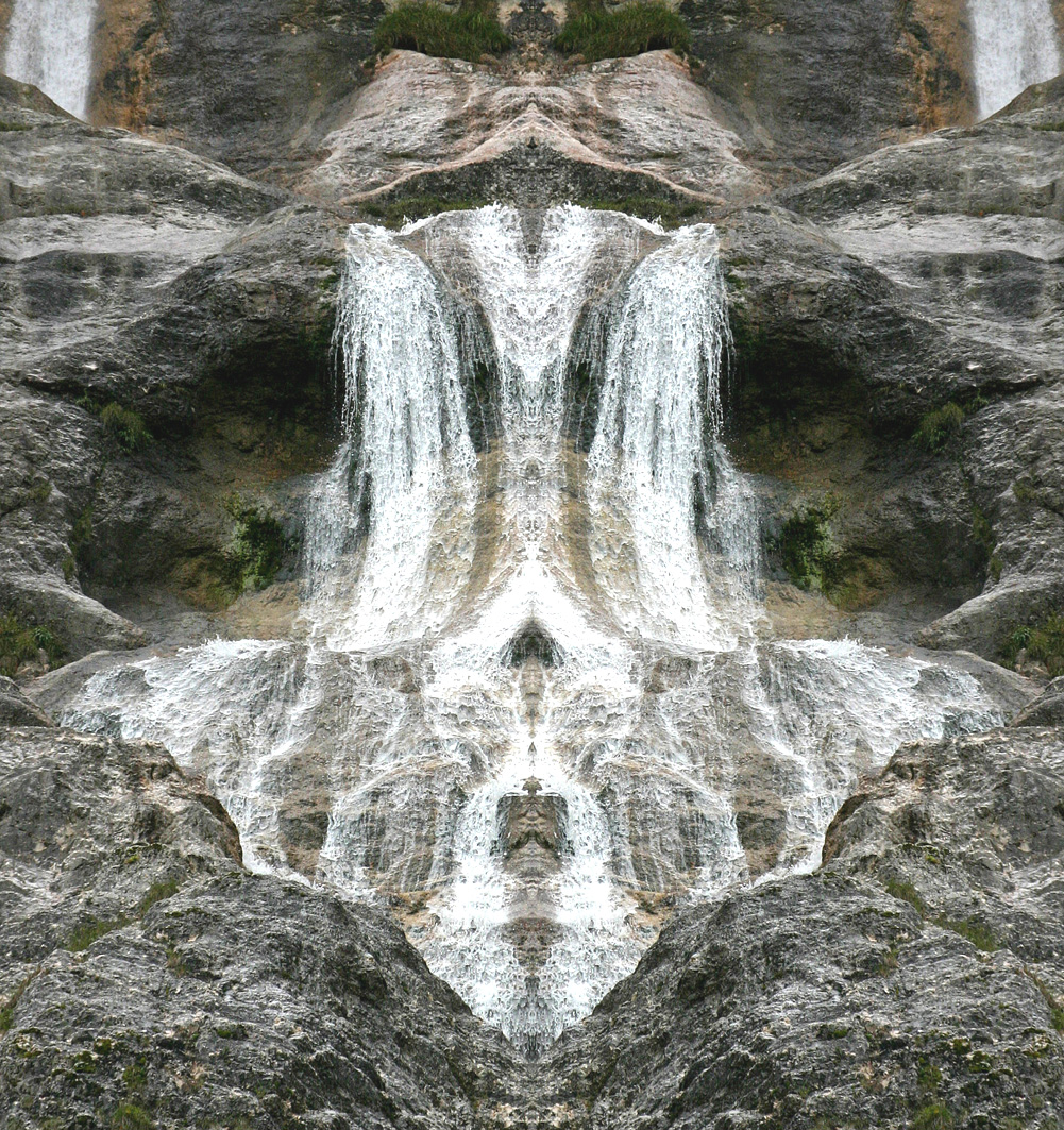 Der eine Krone tragende Königsdeva-Engel zeigt sich mit einem leuchtendem Lichtherzen, das seinen ganzen Oberökrper einnimmt. Der Kopf ist dunkel, damit das strahlende Herz - das Zentrum – deutlicher in Erscheinung tritt. Ebenso lichtdurchflutet sind seine Arme bzw. Flügel, aus denen sich in Fülle in unzähligen Bahnen und Lichtfäden das Lichtwasser in verschiedenen Dichten und Konzentrationen ergießt. Es ist ein grenzenloser und bedingungsloser Fluß des Lichtwassers, der von der Engeldeva-Ebene in einem vertikalen Strom auf der Erde ausgebracht wird. Sein ganzer Körper besitzt die Form eine Kelches, aus dem sich die Fülle ergießt. Auch das Lichtherz selbst ist in das Fließen des Wassers eingebettet und scheint sich aufzulösen. Engel-Devas sind Wesenheiten, deren Wesenkern das Geben, das Schenken und Fließen von Fülle und Segen ist, sie geben bedingungslos und spenden bedingungslos. Die Quelle, aus der sie genährt werden, ist unerschöpflich und gleicht einem reinen Paradies. Der Wasser- und Lichtengel ist verbunden mit der großen Wesenheit im unteren Teil des Bildes. Dieses Wesen ist ein sehr alter Hüter kosmischer Wasserfrequenzen. Sein Kopf und sein Kronenchakra tragen ebenfalls Urlicht in sich. Sein Gesicht ist herzförmig und steht mit dem Herzen des Engel-Devas in Verbindung. Hinter ihm erscheinen große ausgebreitete Flügel, die das Licht des darüber stehenden Deva-Engels in die horizontale Ebene der Erde verteilen. Beide Wesenheiten ergänzen sich, sind miteinander verwoben und ihr Zusammen-Wirken ergibt eine Ganzheitlichkeit und Harmonie Den Kanal (Mittelachse), der die kosmische Achse darstellt, beseelen unzählige kleinere Wasser-Wesenheiten, die mit dem Urlicht in Verbindung stehen. Die dominierenden Herzen der beiden Wesen drücken aus, da das Wasser ein Geschenk der Liebe aus der Schöpfungsquelle ist und durch das Dienen der kosmischen und irdischen Naturdevas zu uns getragen wird.