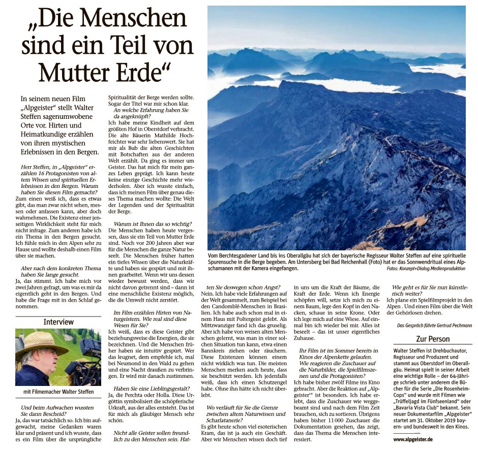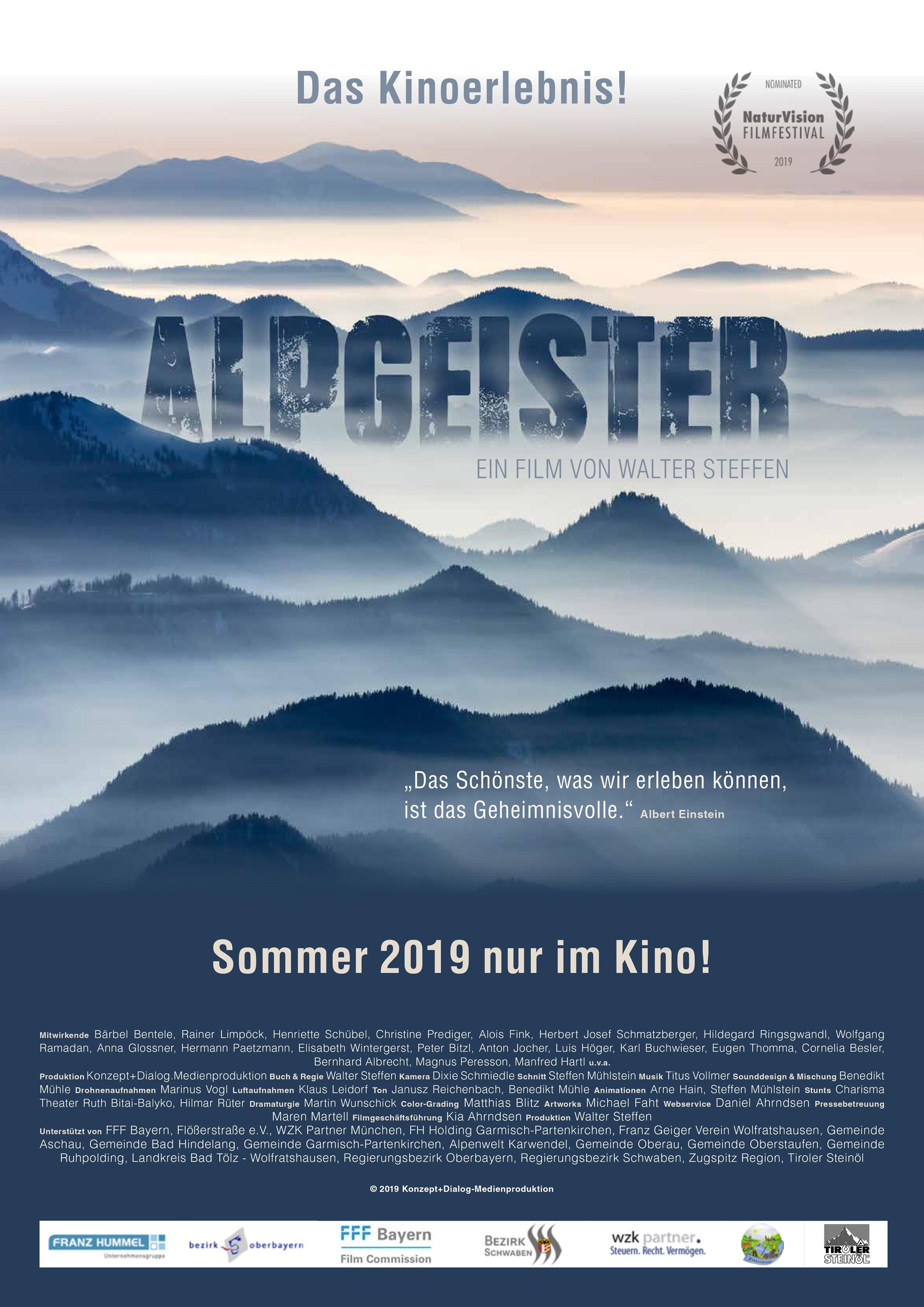 Der Kultfilm von Walter Steffen war der Kino-Erfolg des Sommers 2019 entlang der bayerischen Alpen: Atemberaubende Naturaufnahmen unserer Bergwelten, aufwändig inszenierte Spielszenen, raffinierte 3D-Animationen sowie eine ausdrucksstarke, orchestrale Filmmusik: ALPGEISTER ist großes Kino!