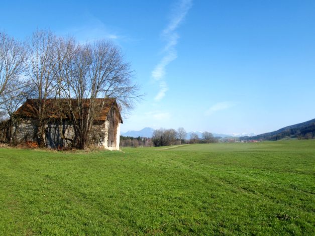 Foto: Das Geisterhäusl von Vachenlueg (Ansicht von Westen, in Bildmitte der Gaisberg)