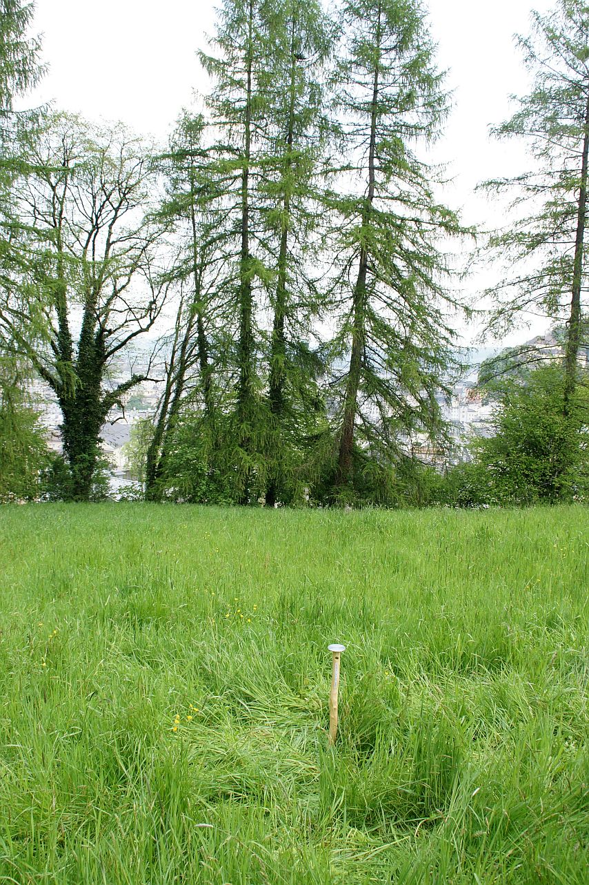 Interessanterweise ist dieser Punkt auf einer unbebauten freien Fläche situiert, auf der es auch keinen Baum oder Strauchbewuchs gibt. So als wäre der Kraftpunkt bis zu seiner Entdeckung frei geblieben. Sehen Sie bitte die entsprechenden Pläne. Vom Genius Loci Salzburg aus liegt der Salzburger Hochthron in 20°zur Nord/Süd und bildet ein Neuneck, welches im Plan zusätzlich auch als Neunstern ausgeführt ist.