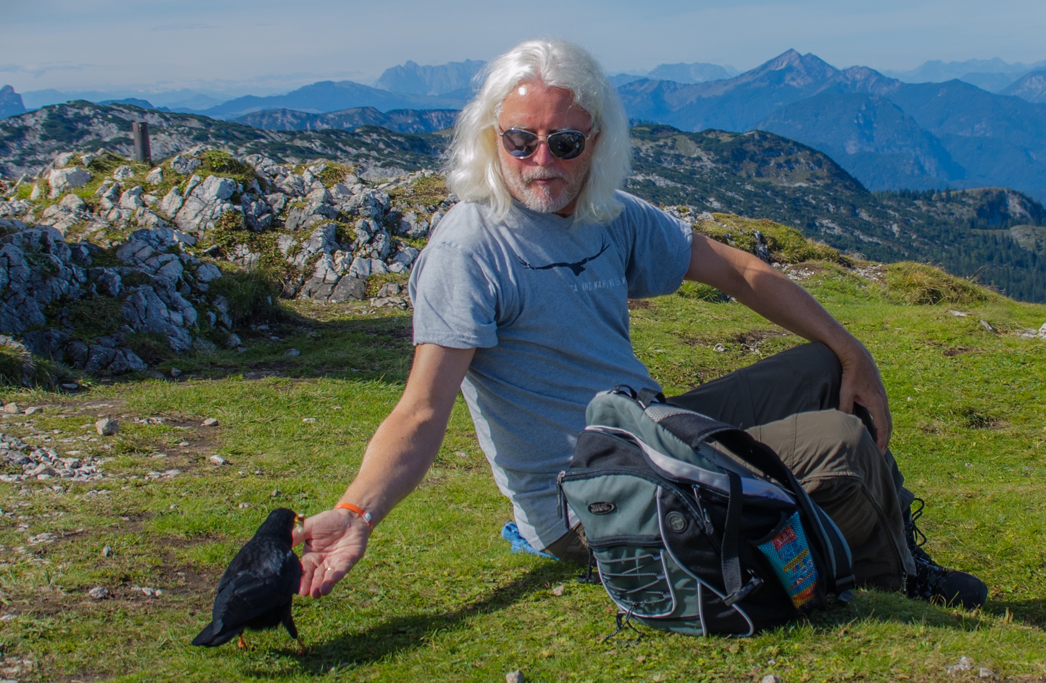 Viele Bergsteiger kennen die Dohlen (gehören zur Familie der Raben), die Bergraben, die zutraulich und frech sich der Brotzeit des Wanderers nähern und mitessen. Hören wir auf ihre Weisheit. Sie gelten als die intelligentesten Vögel, sind Stimmkünstler und besitzen Talent, die menschliche Sprache nachzuahmen.
