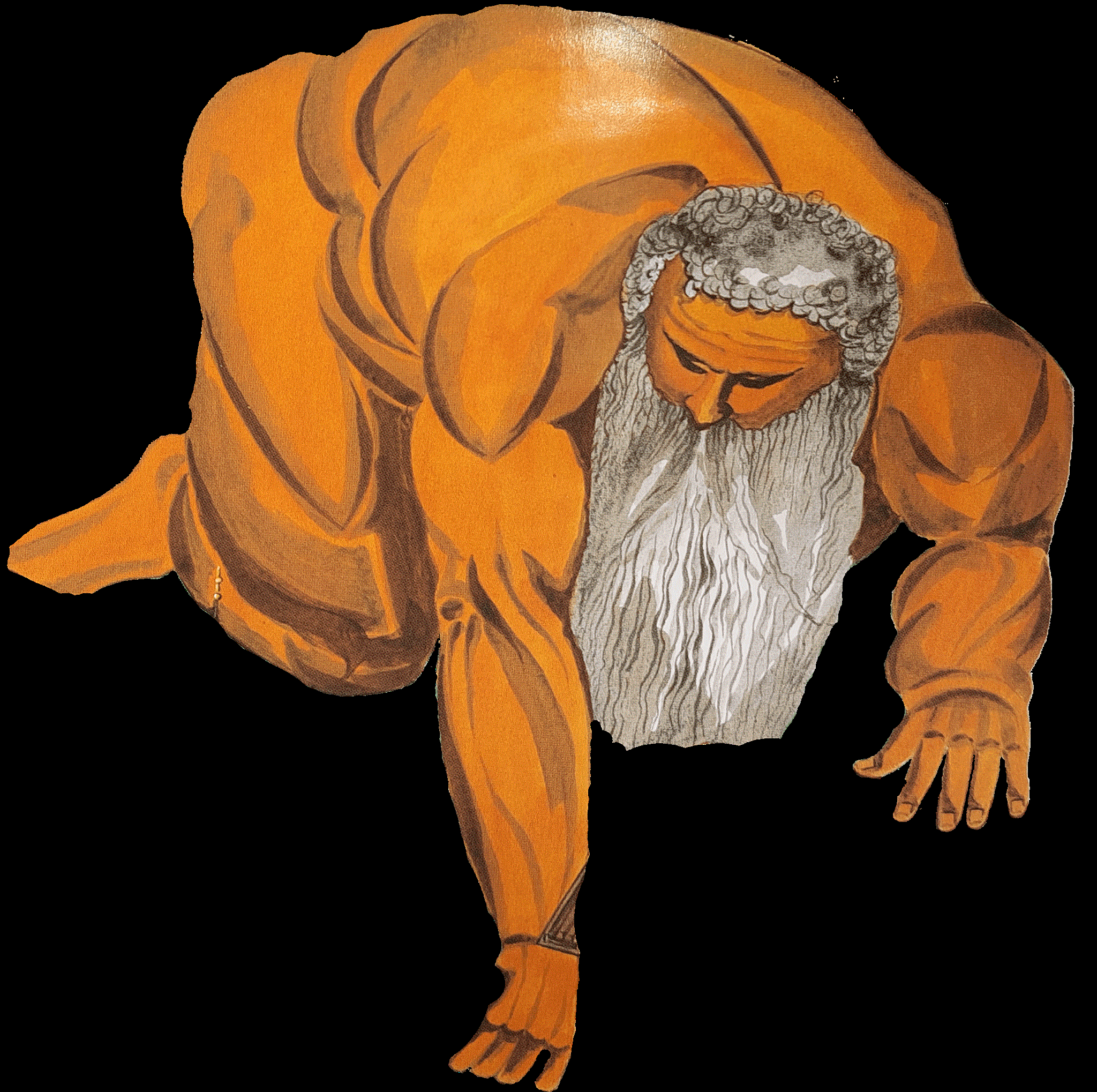 Grafik oben: Darstellung des Riesen Abfalter in “Sagen und Märchen aus dem Berchtesgadener Land” (Plenk Verlag, Berchtesgaden)