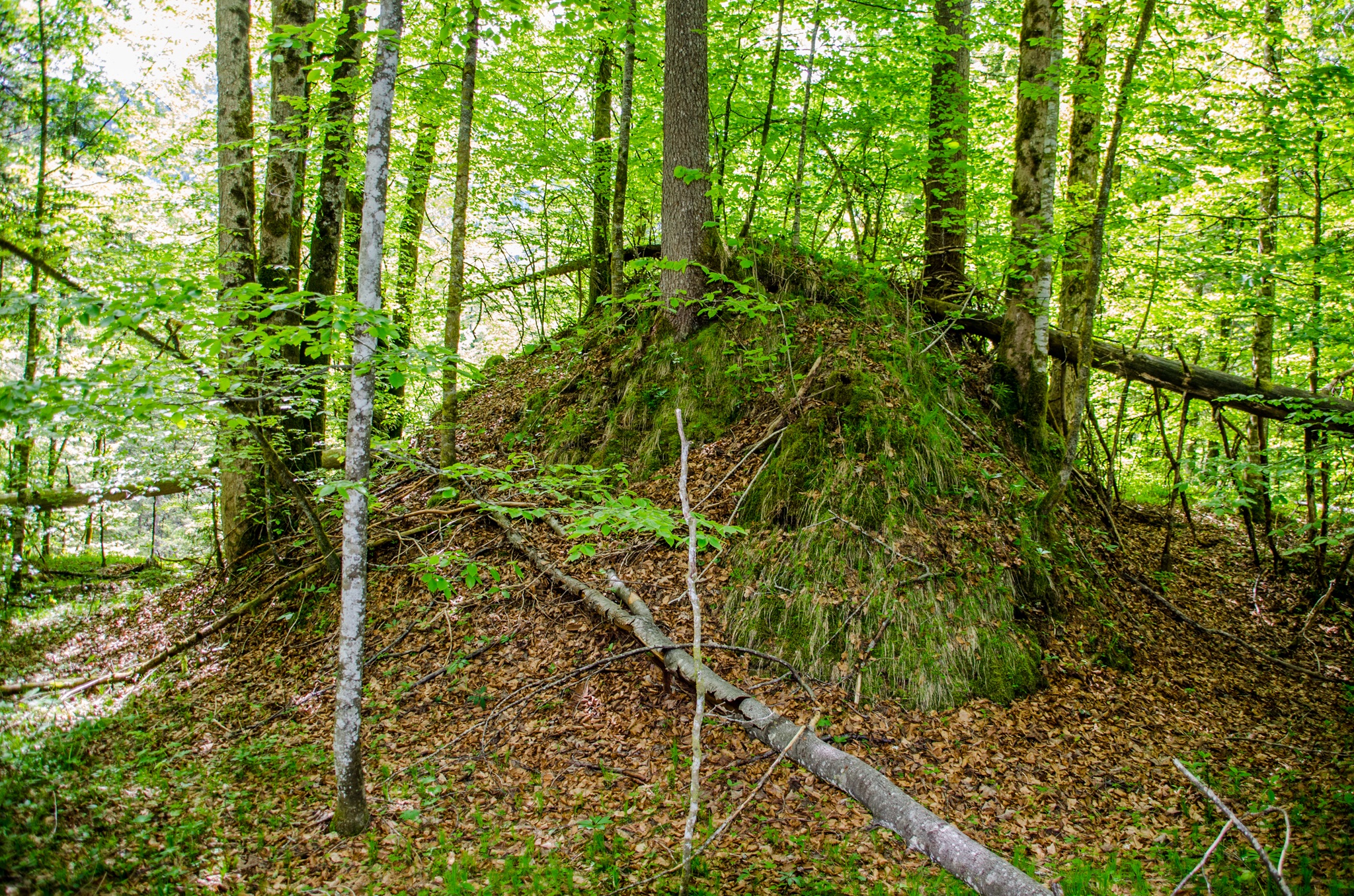Etwas weiter entfernt erhebt sich ein kleiner, offensichtlich aufgeschütteter sogenannter Elfenhügel (siehe Foto). Auf einer Seite ist noch eine Art Steintreppe erkennbar.