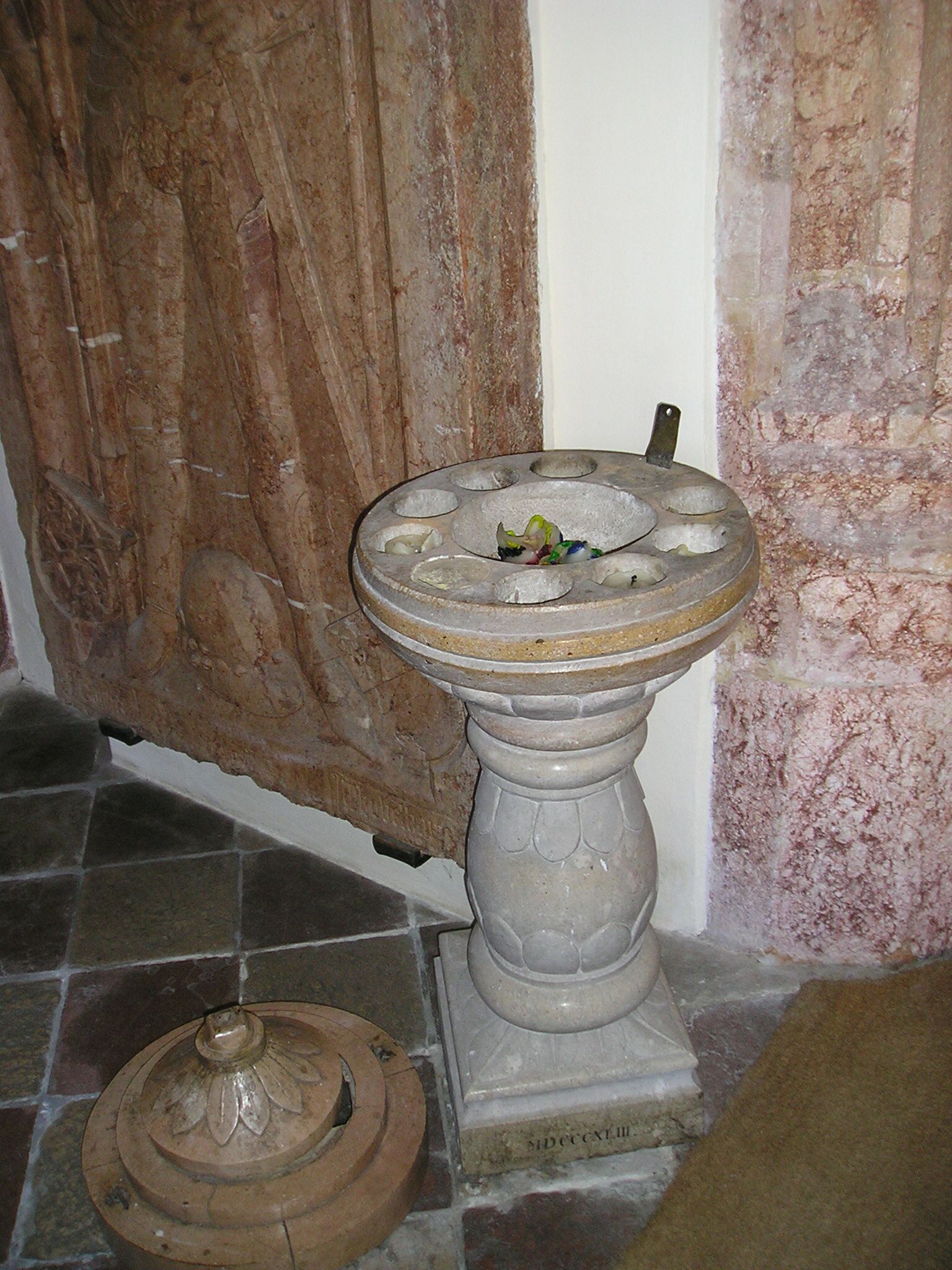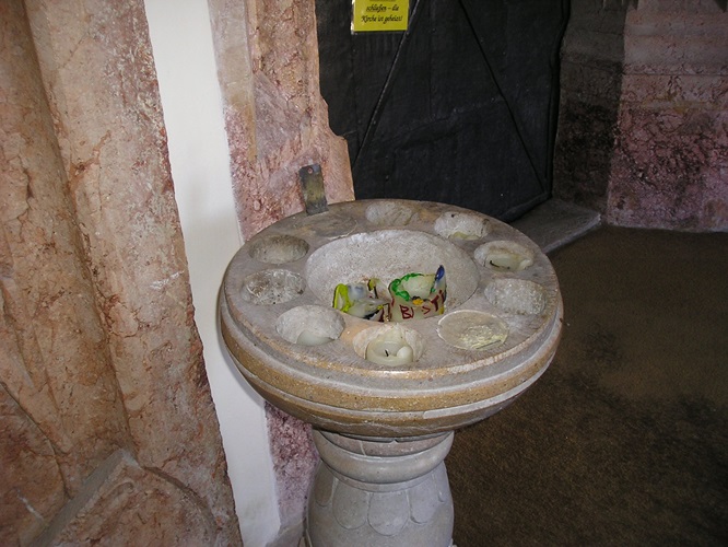 Das Besondere an jenem Ort ist jedoch ein weiterer Schalenstein, der - wie in Bad Reichenhall-Nonn - in die Kirche integriert wurde - hier jedoch als Lichterstein.