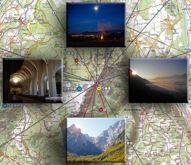 Nun sind ja gerade am Untersberg jene wundervollen Sonnenschauspiele bekannt: - zur Sommersonnenwende oben am Berg in der Höhle Steinerer Kaser (Mittags-scharte) - zur Wintersonnenwende unten am Berg auf der Hochburghöhe (Großgmain).