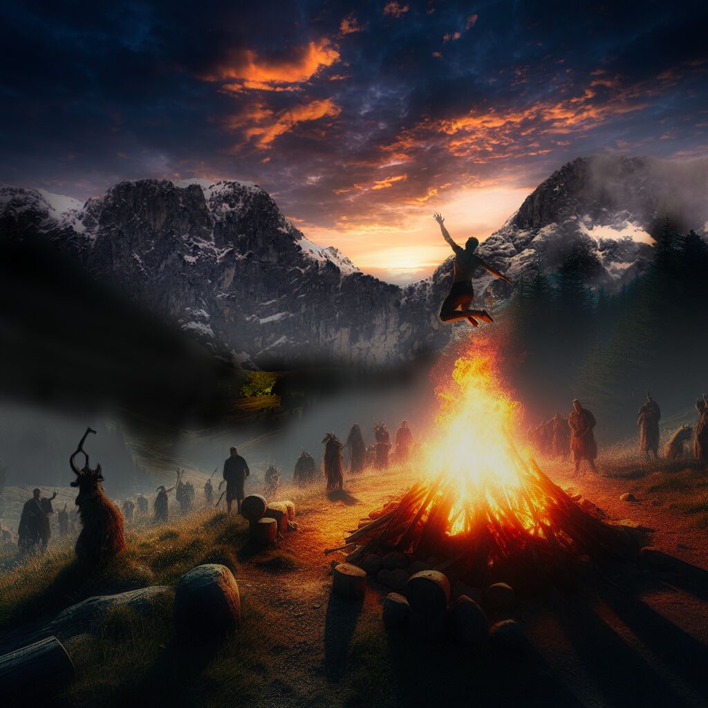 Foto ganz unten: in der Grafik ganz oben = Wintersonnwendfeuer am Johannishögl