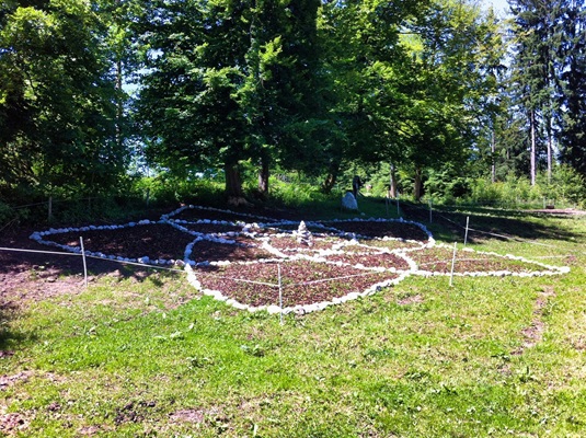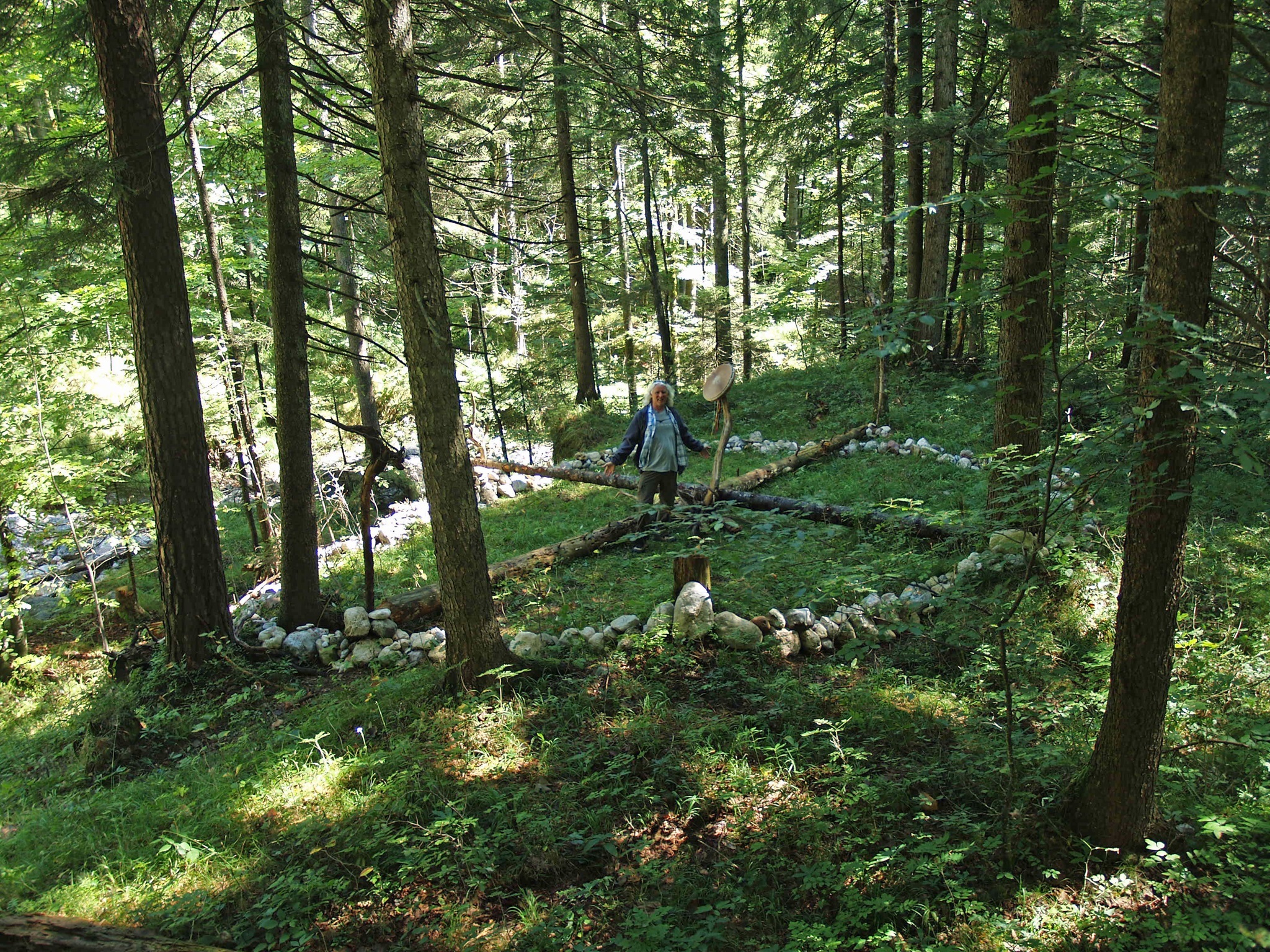 Steinsetzungen sind in der heutigen Zeit ein menschlicher Ausdruck neuer Erdverbundenheit. Als Lithopunktur bezeichnet der Pionier der Geomantie Marco Pogacnik diese Akupunktur der Erde. In der Bioregion Untersberg finden sich in den letzten Jahren zunehmend Steinkreise - meist in der Form des keltischen Rades (in Analogie zu den sogenannten Medizinrädern der nord-amerikanischen Natives) oder seit 2009 auch der Venusblume, die durch Werner Neuner initiiert wurde (Foto 6 Venusblume in der Grasslhöhle).Aber ich fand auch Hinweise auf archaische Steinsetzungen, vielleicht im Sinne eines Schutzkreises, wie auf der verfallenen Karalm (Foto 3) unterhalb der Mittagsscharte gelegen (siehe dazu auch mein Buch “Mythos Untersberg” 2011).