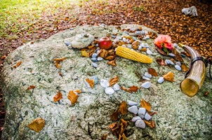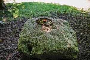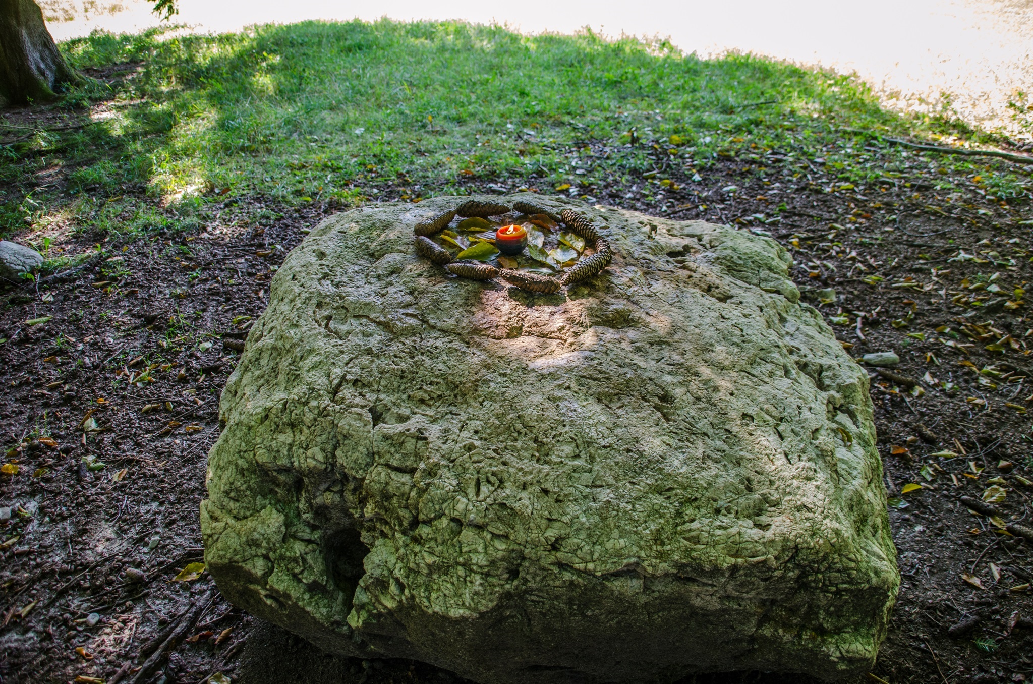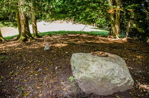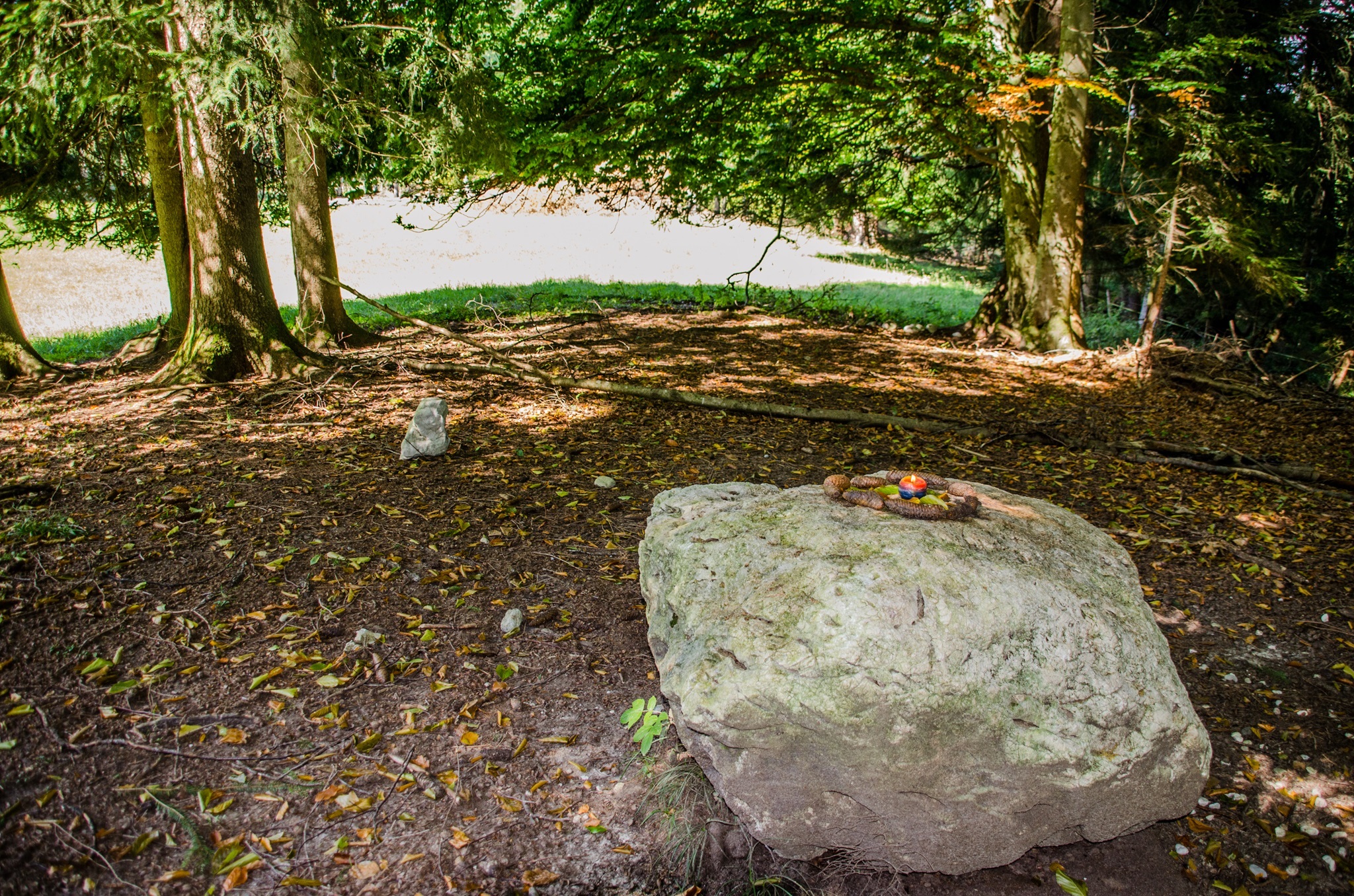 Am linken hinteren Wiesenrand, schon im Wald, liegt er - der Stein. Umgeben von mystischen Tannenhainen und mächtigen Buchen. Er lässt schnell das Herz höher schlagen. Die Blicke streifen durch die Bäume immer wieder zum Untersberg und erinnern an die Sage von der weißen Frau.