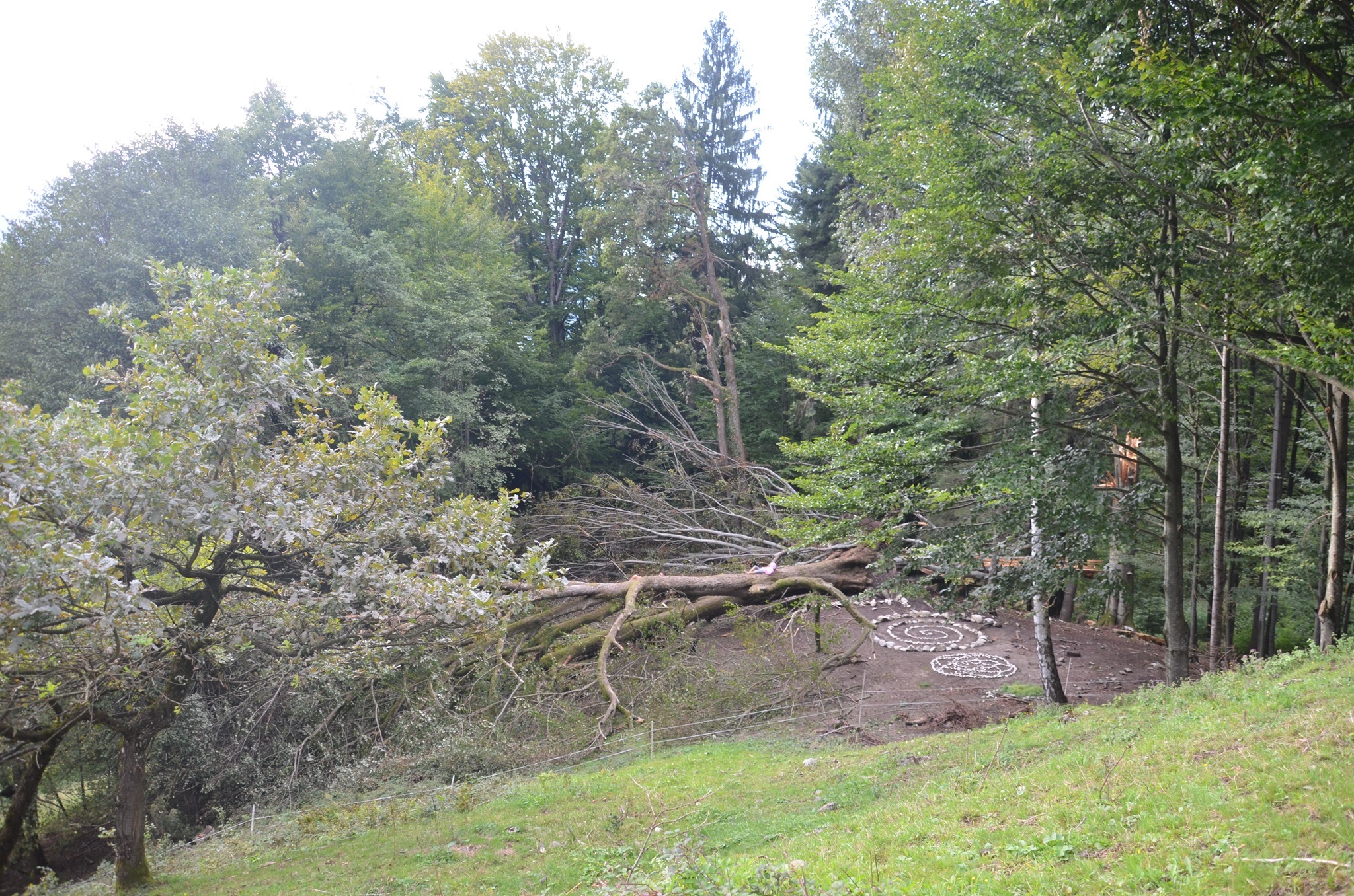 Bei einem gewaltigen Sturm am 26. August 2017 wurden in der Bioregion unzählige Bäume entwurzelt und geknickt. Auch die Linde wurde sein Opfer.